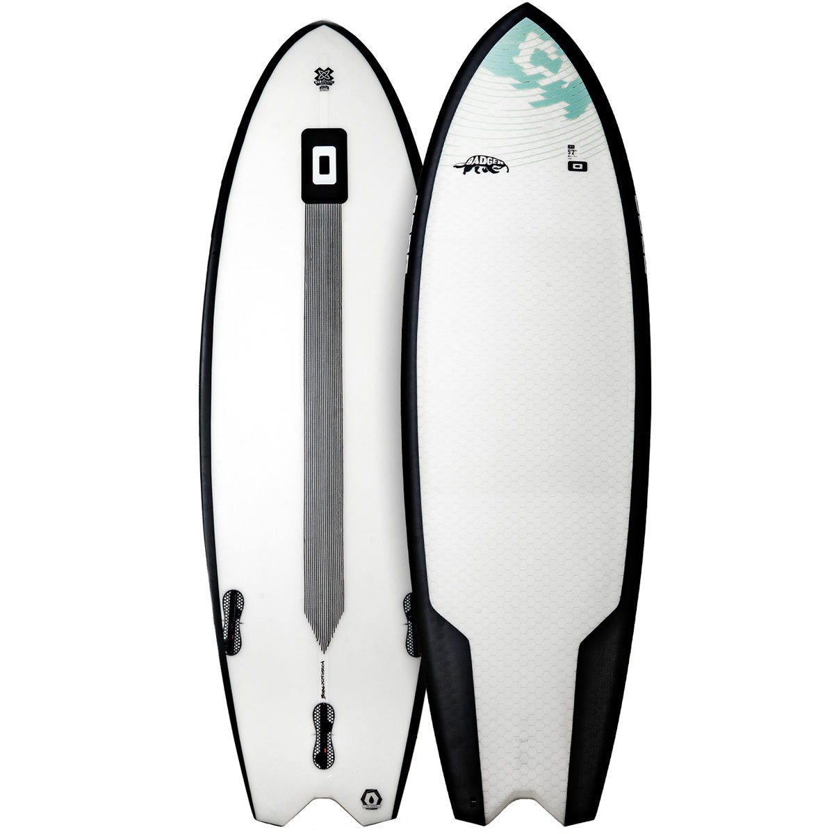 The spine in the nose provides extreme smoothness, soft landings and minimizes the risk of diving in the chop. The transition into a double concave ensures that the rocker in the middle section is kept low, while the rails have a higher rocker. This allows for tighter turns than classic fish shapes. The Vee in the tail gives the Badger a lot of control and a smooth transition from rail to rail.